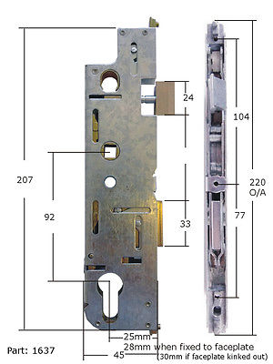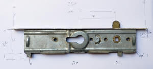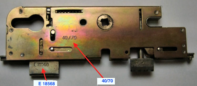 GU G18870 40/70 cote D 1045mm têtière de 16mm et aussi la G18730 et E-18377-09. E2057921 GU 18377.11 - G-18570 Cette serrure n'existe plus