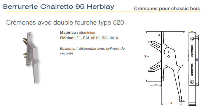 Crémones pour châssis aluminium