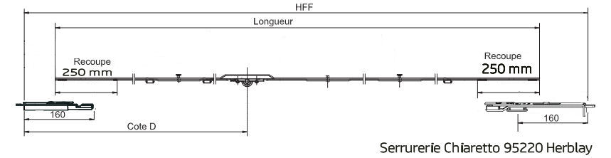 vous pouvez coupez la partie centrale de la crémone Massard qui est en axe a 17/25 ou 31mm et ressouder les tringle hautes et basse dessus et vous avez la même crémone |