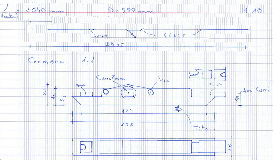 Question 18 (Croquis/photos de la crémone complète) =