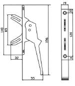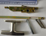sécurité pour porte d'entrée Référence: E 04258 mécanisme à relevage poignée Têtière 18 mm de large. axe à 50 mm Autre référence: E 04215 |