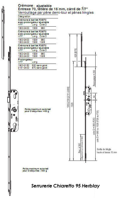 Cette Crémone est universelle, elle est ajustable en partie haute et basse par