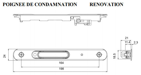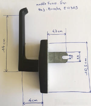 Cette poignée n’existe plus et n’a pas été remplacée. Il faut changer la crémone pour y monter une crémone F7.5 et remplacée la poignée à fourche par une poignée à carré (standard).