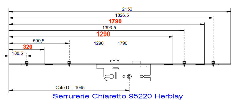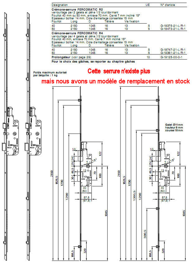 5-21298-20-01- 1175-2130 mm cette serrure n'existe plus mais on peut la remplacer par le nouveau modèle ci-dessous ainsi que les sabot