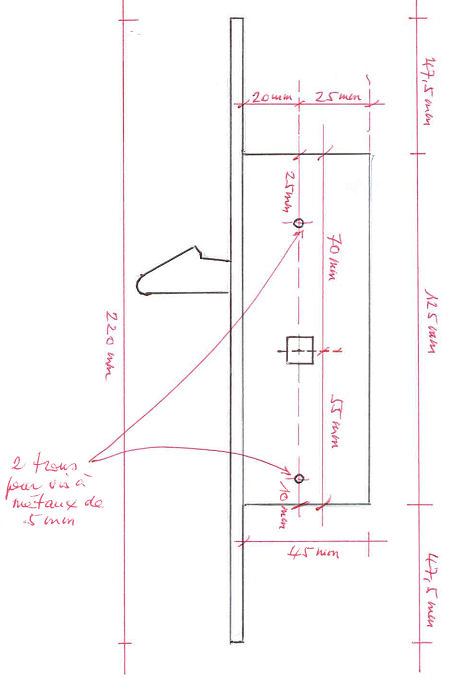 0-1. (prévoir quelques modifications sur la porte, il faut entailler sur toute la hauteur la nouvelle tringlerie qui n'est plus perpendiculaire mais parallèle à la têtière