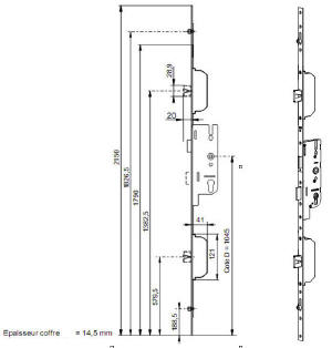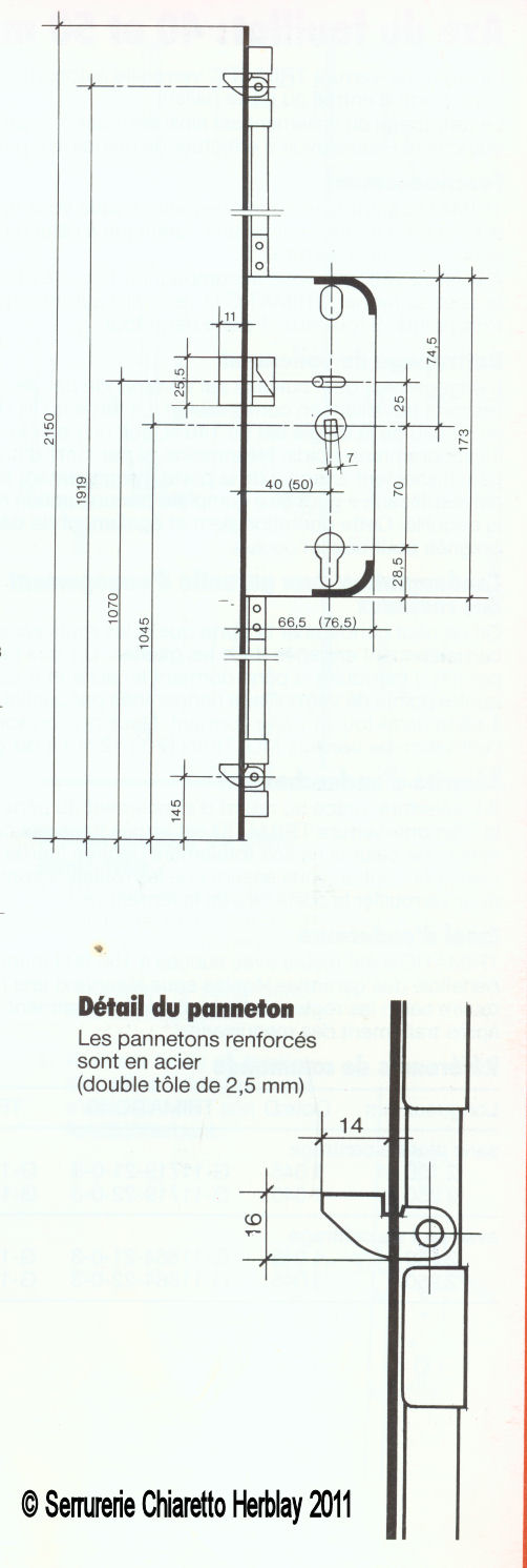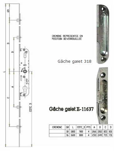 | crémone de porte d'entrée axe à 40 ou 50 mm 14659 12 | cette serrure n'existe plus mais nous avons un modèle de remplacement en stock contactez nous par mail de préférence remplissant le tableau à la fin de cette page c'est la Trimatic | ||||||||||||