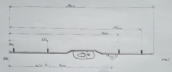 longueur 850mm de l'axe du fouillot au bas du coffre bas 680mm |