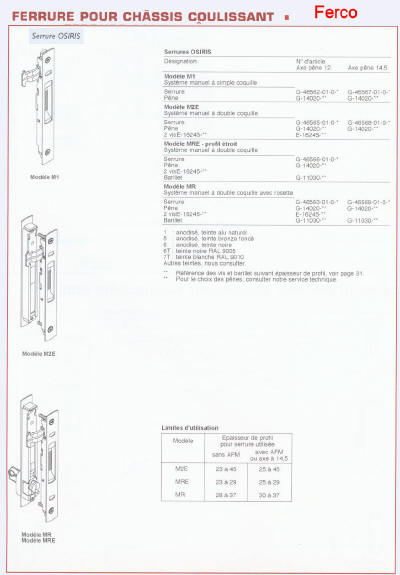 Ferco/GU coulissant à translation GU966 ancienne génération, il n'existe plus