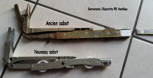 Sur les anciens sabots la tringle de liaison est plate Sur les nouveaux sabot elle ronde en 8 mm