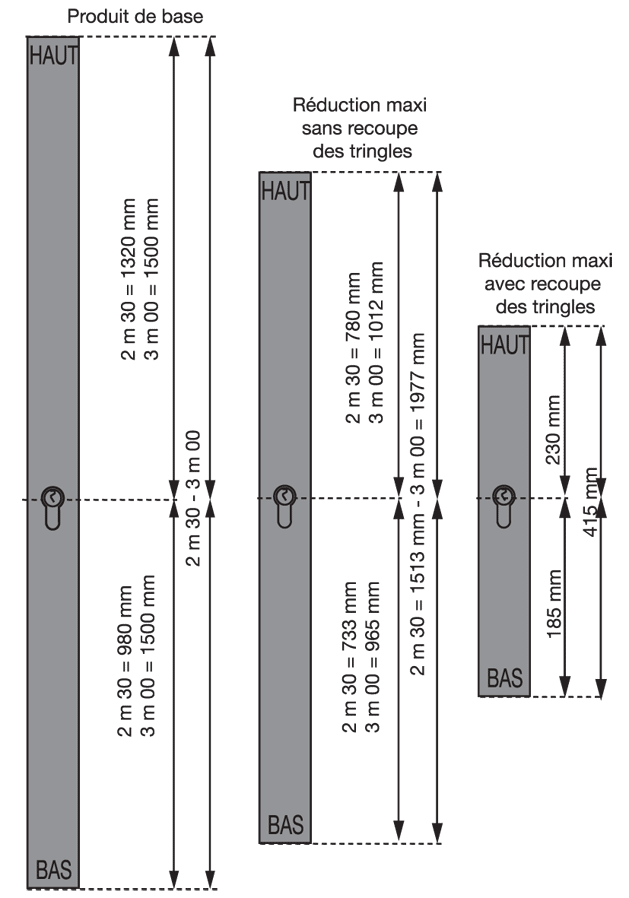 Pour ouvrants à la française à 2 vantaux. Entraxes