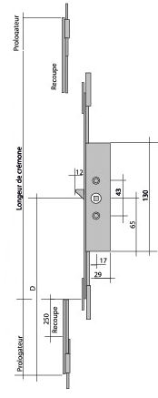 Crémone à Têtière F17 ajustable en partie haute et basse