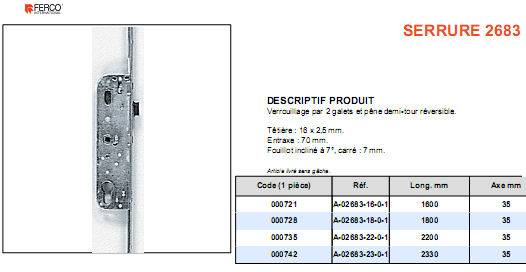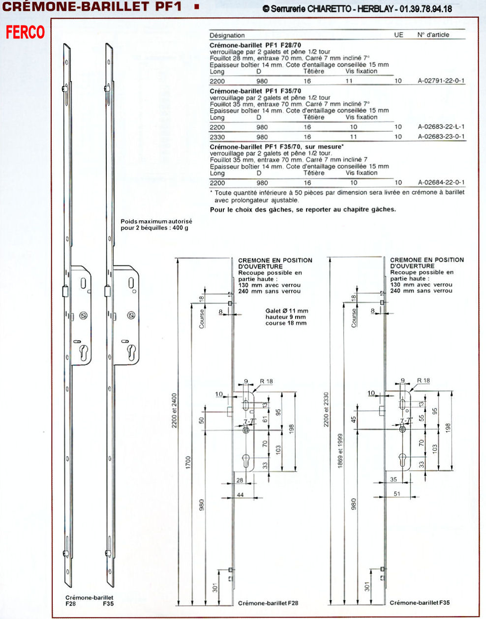 CREMONE -BARILLET PF1 Cette crémone est remplacer par la crémone à barillet R2 |
