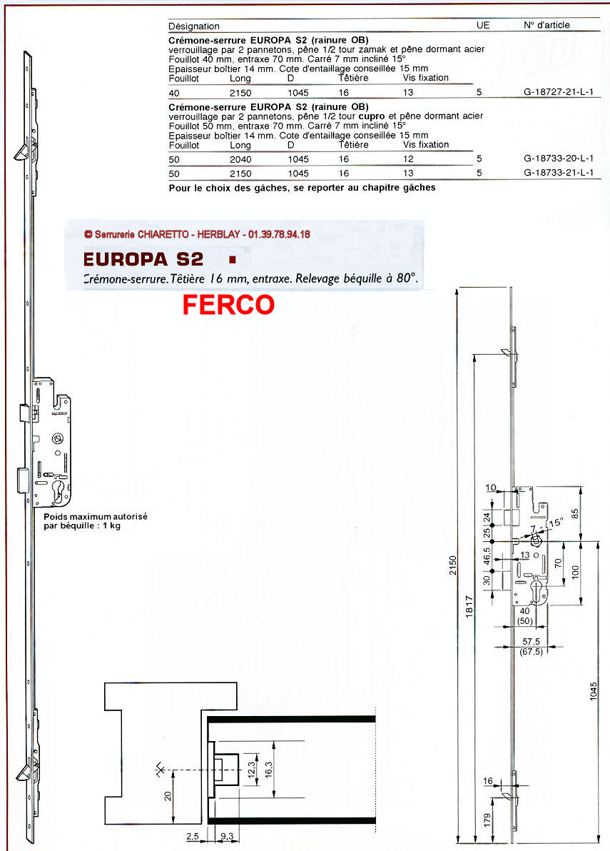 inscrit derrière la crémone 9-39869-41 B 33-10