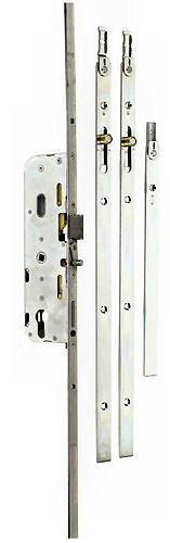 Crémone ajustable de remplacement complète composée des éléments suivants : 1 crémone serrure de longueur 1522 mm. Cote D : 1045 mm. Tétière de 18 mm. Entraxe : 70 mm. Carré : 7 mm. 2 prolongateurs à galet de longueur 423 mm. G-18238-00-0-3